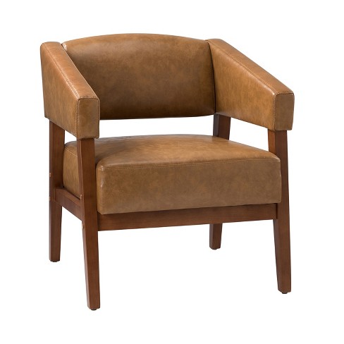 Product Name: Leather armchair with wooden arms sale