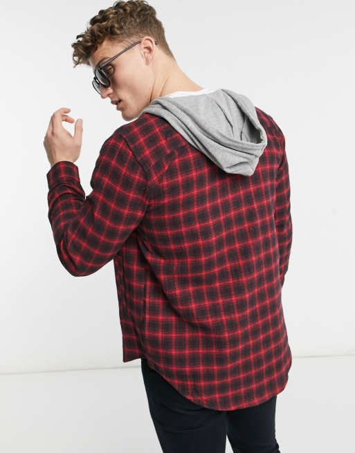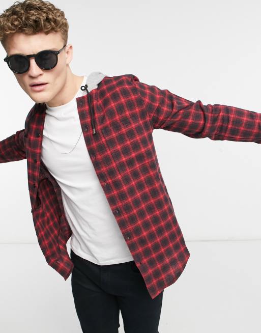 Product Name: Red and black check hooded shirt sale